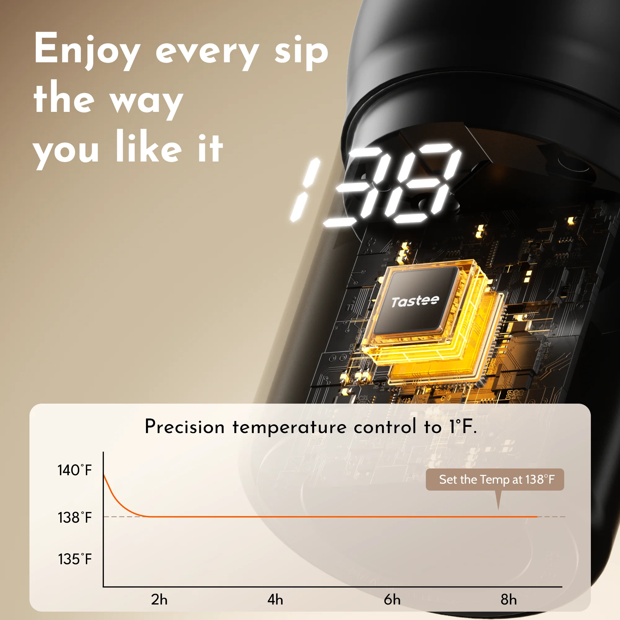 - Precision Taste: Adjust temperature in 1 ℉ increments for your perfect sip.